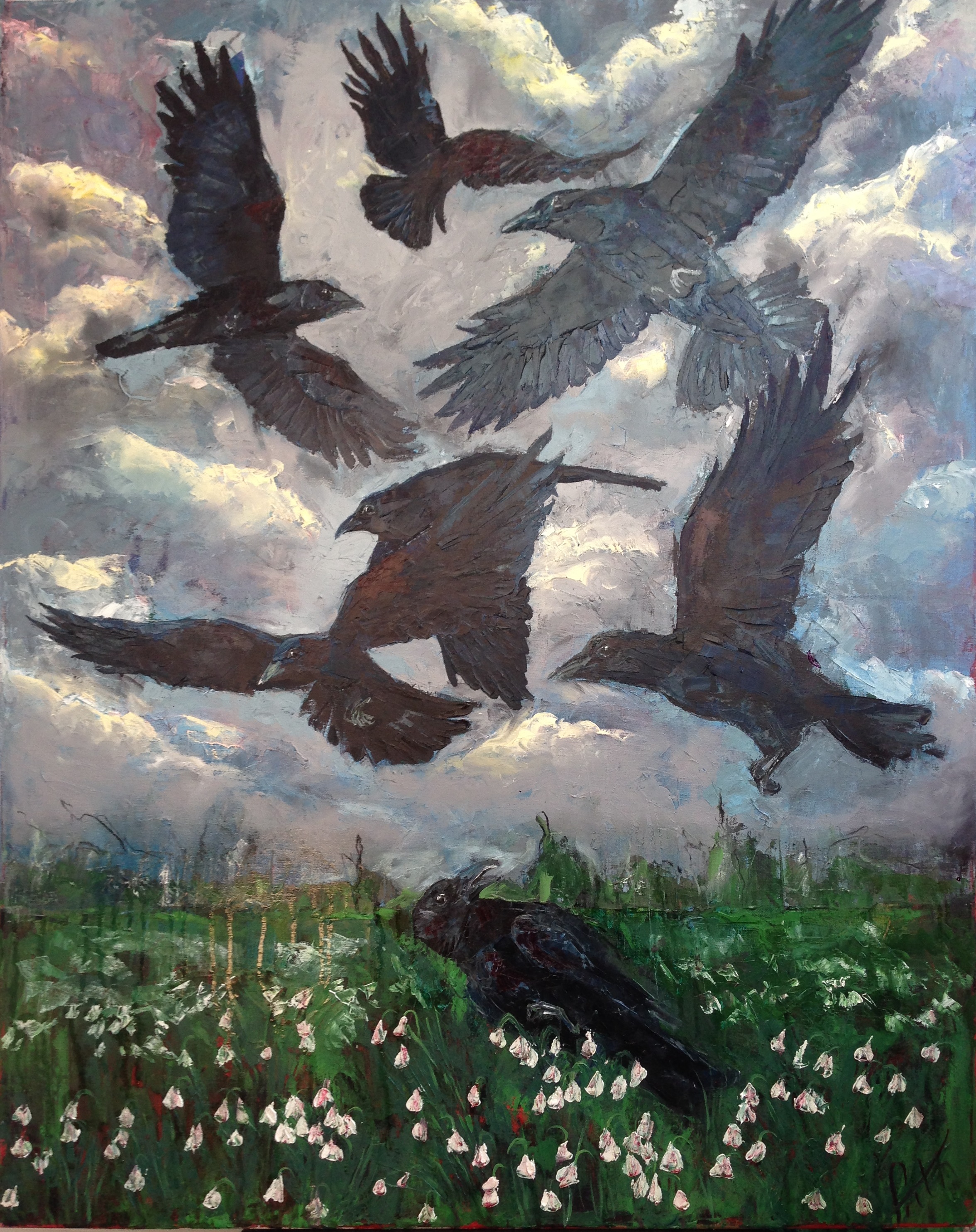 The colours chosen by the artist gives connotations of darkness and show perhaps that there is no way out of the situation, this also could relate to the artists life and showing that she was not in an exultant state of mind and spirit. Perhaps the artist views this painting as hopeful and almost as if the crow that is being attacked represents previous burdens and thus ridding her from grievances.